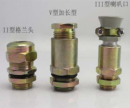 防爆填料函主要由:螺母、密封圈、入口接體、中接體、錐度套、壓緊螺母、墊片、密封圈可鎧裝電纜組成。螺牙規格 :共有四種,分別為公制牙MG牙規,德制牙PG牙,美制牙NPT錐螺紋,英制牙G(PF)管螺紋,美制牙為錐螺紋,英制牙為管螺紋型。